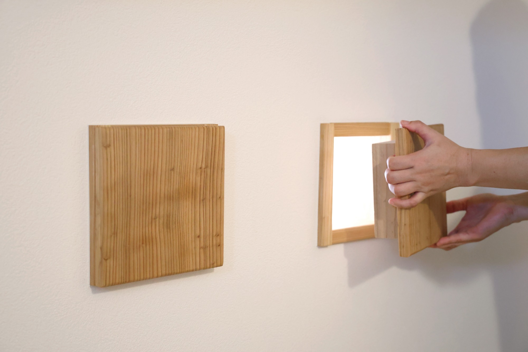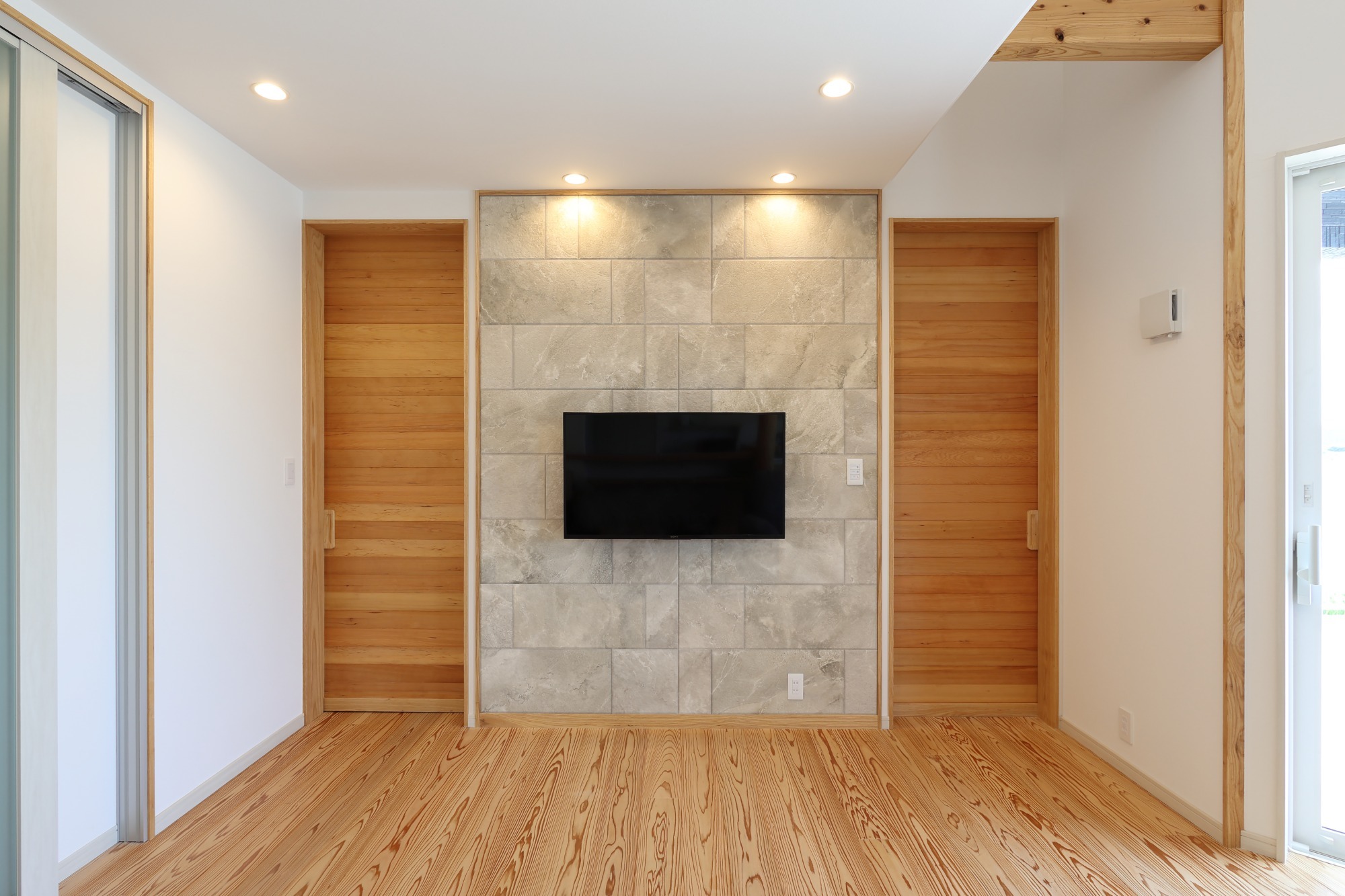 開かないかくし扉は遊び心。無垢床は木目の流れまで計算して施工。