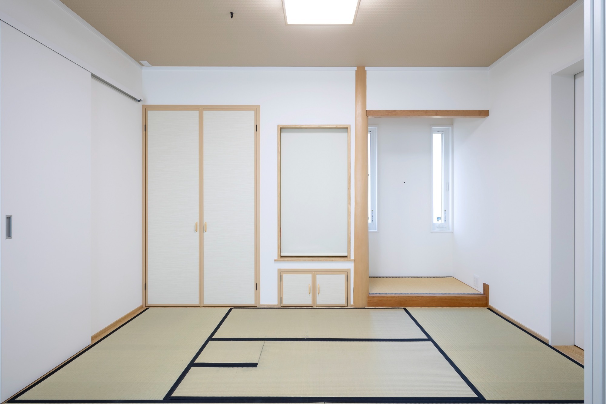 ゲストルームとしても使える和室の床の間には開閉可能な2つのスリット窓で採光と通風を確保。