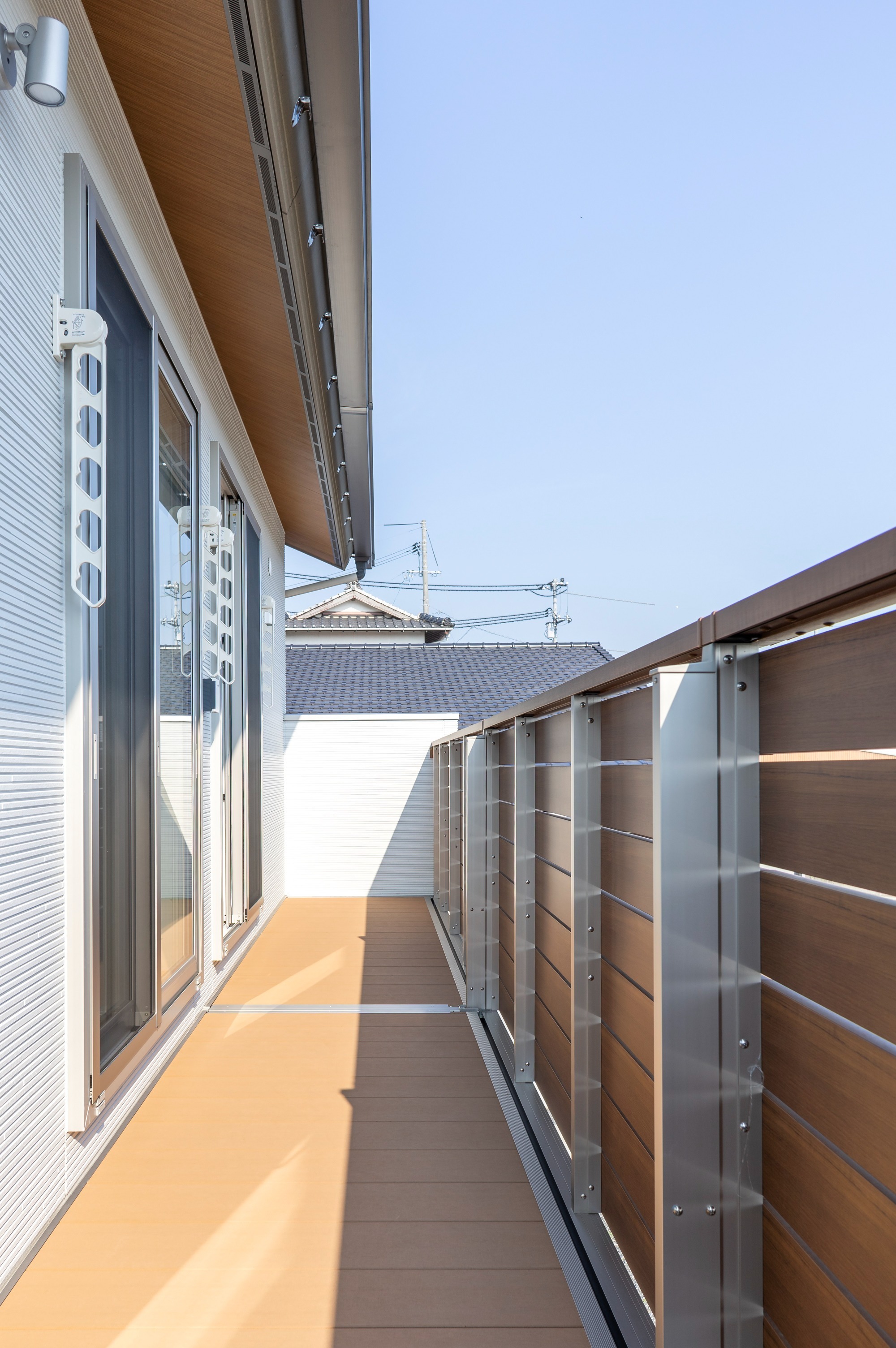 西日本で初めて採用した出幅1200のアルミバルコニー。「いつかここでお茶を楽しみたい」と奥様。